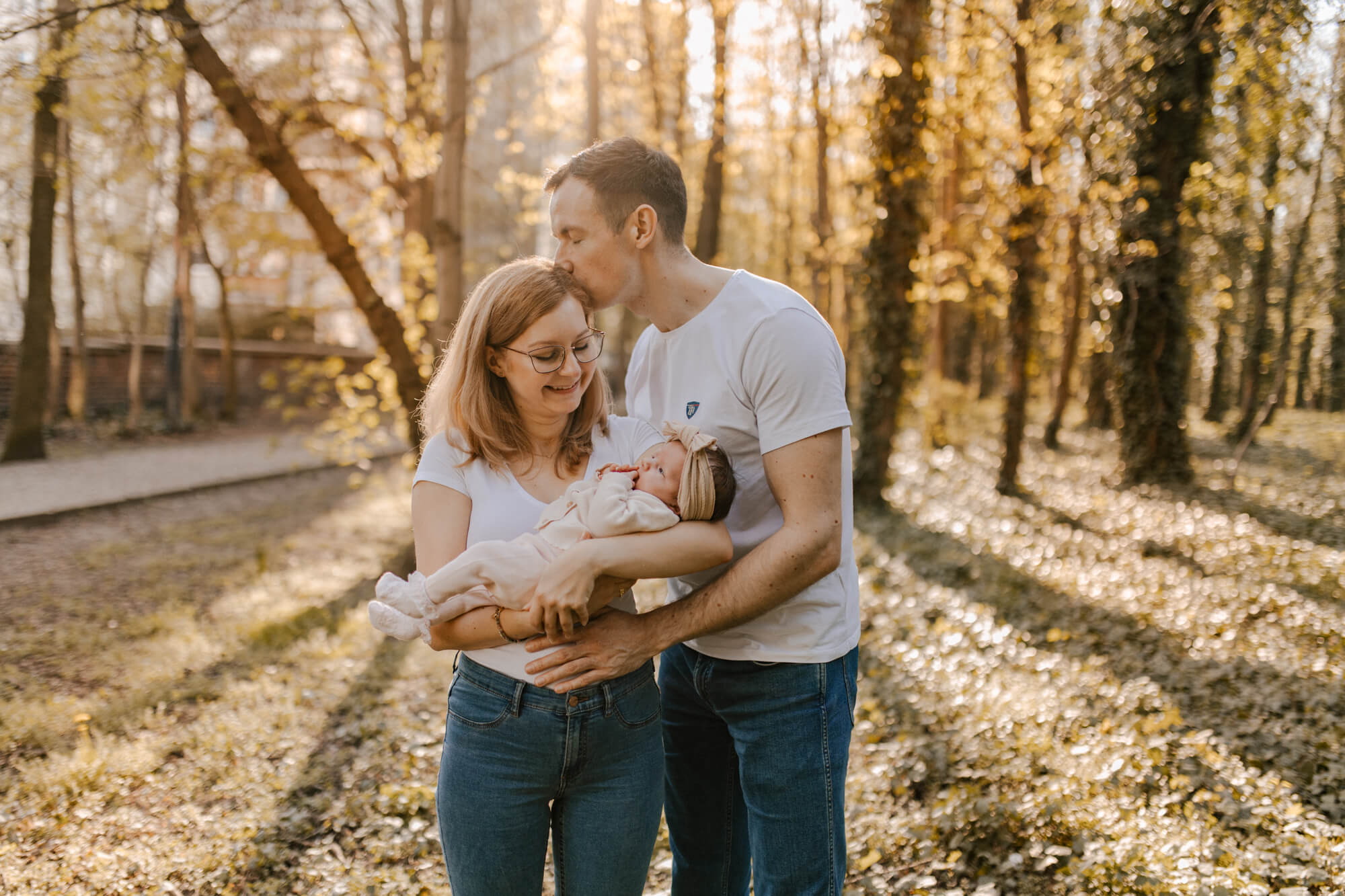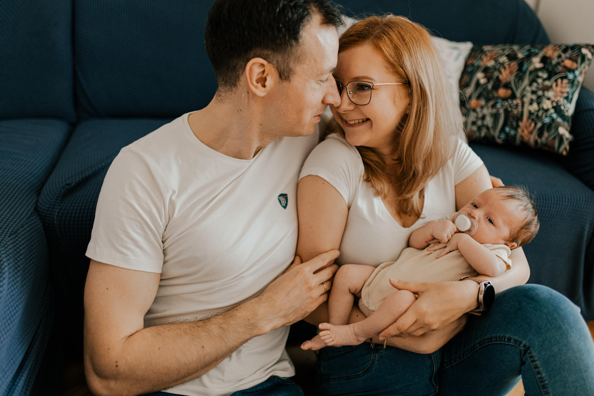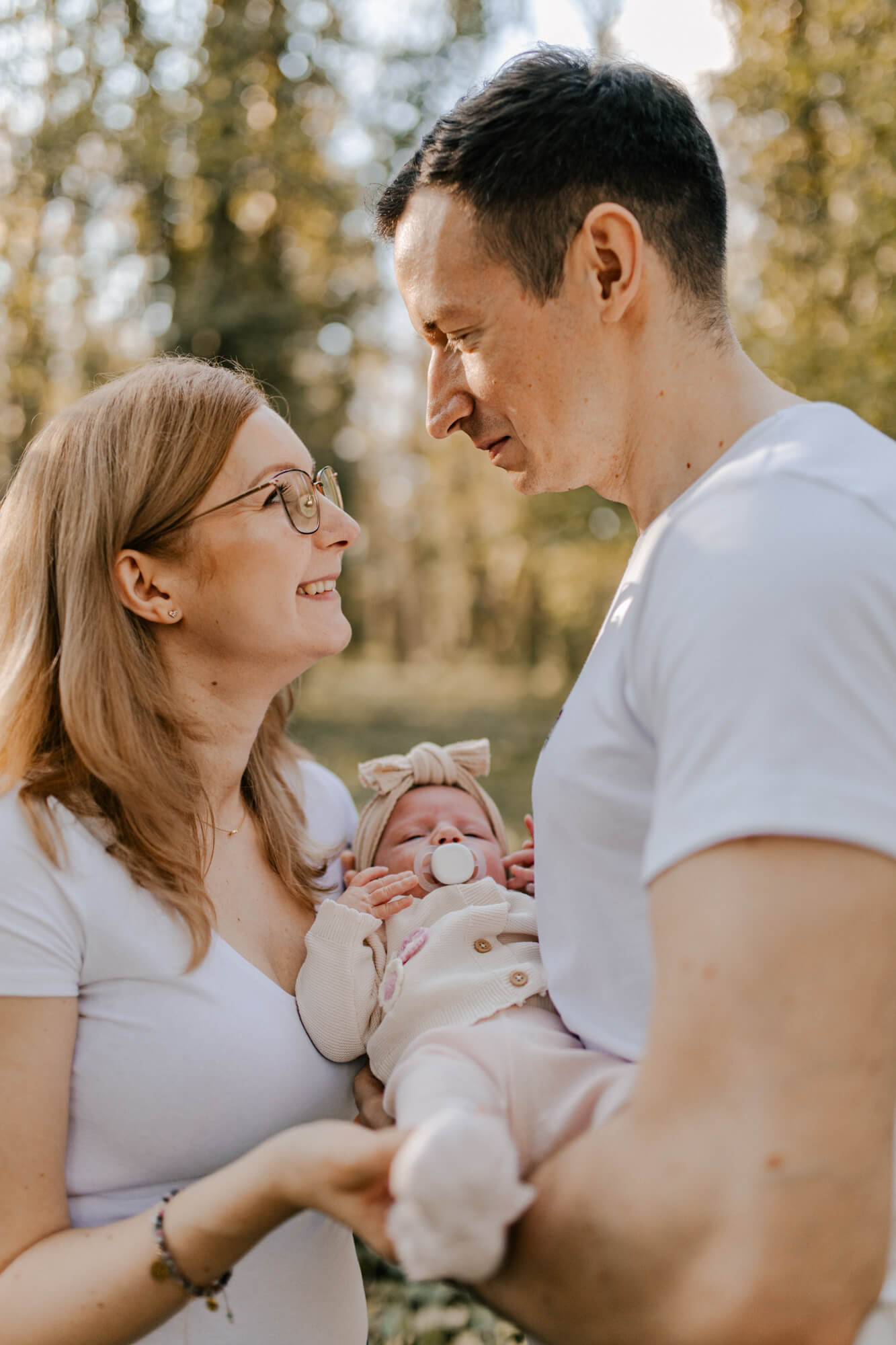 Z Kasią i Dawidem poznałam się rok wcześniej i miałam ogromną przyjemność fotografować ich wesele. Nawet nie wiecie jak było mi miło, gdy odezwali się do mnie ponownie: z wiadomością, że są już teraz rodziną i chcieliby, abym uwieczniła dla nich kolejny ważnych ich moment ich życia. I spotkaliśmy się! Eliza na tych zdjęciach ma raptem 3 tygodnie.