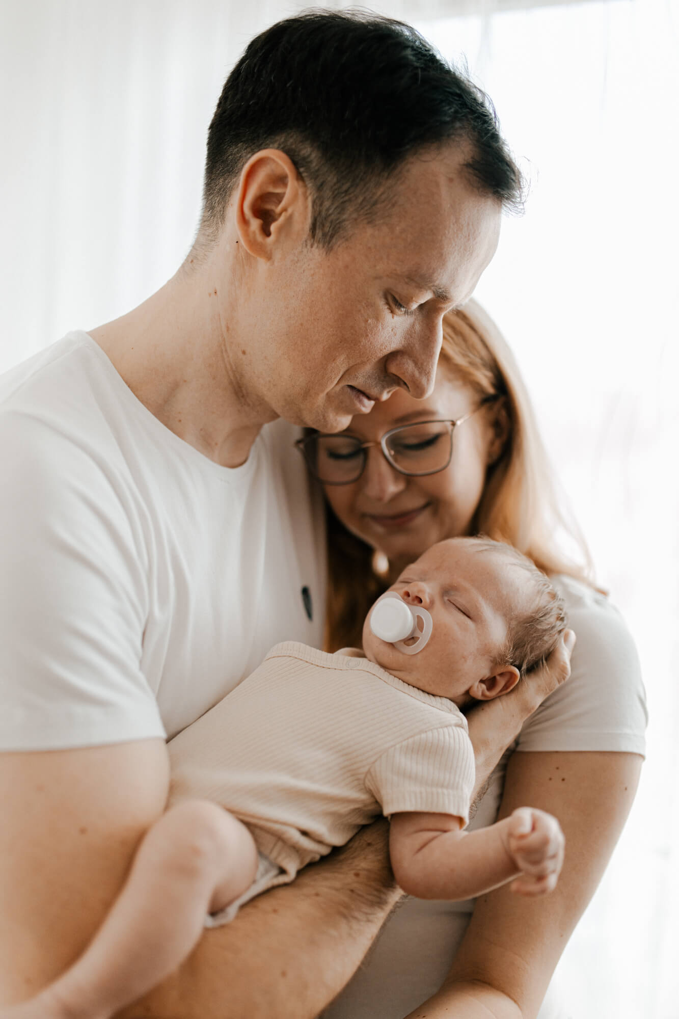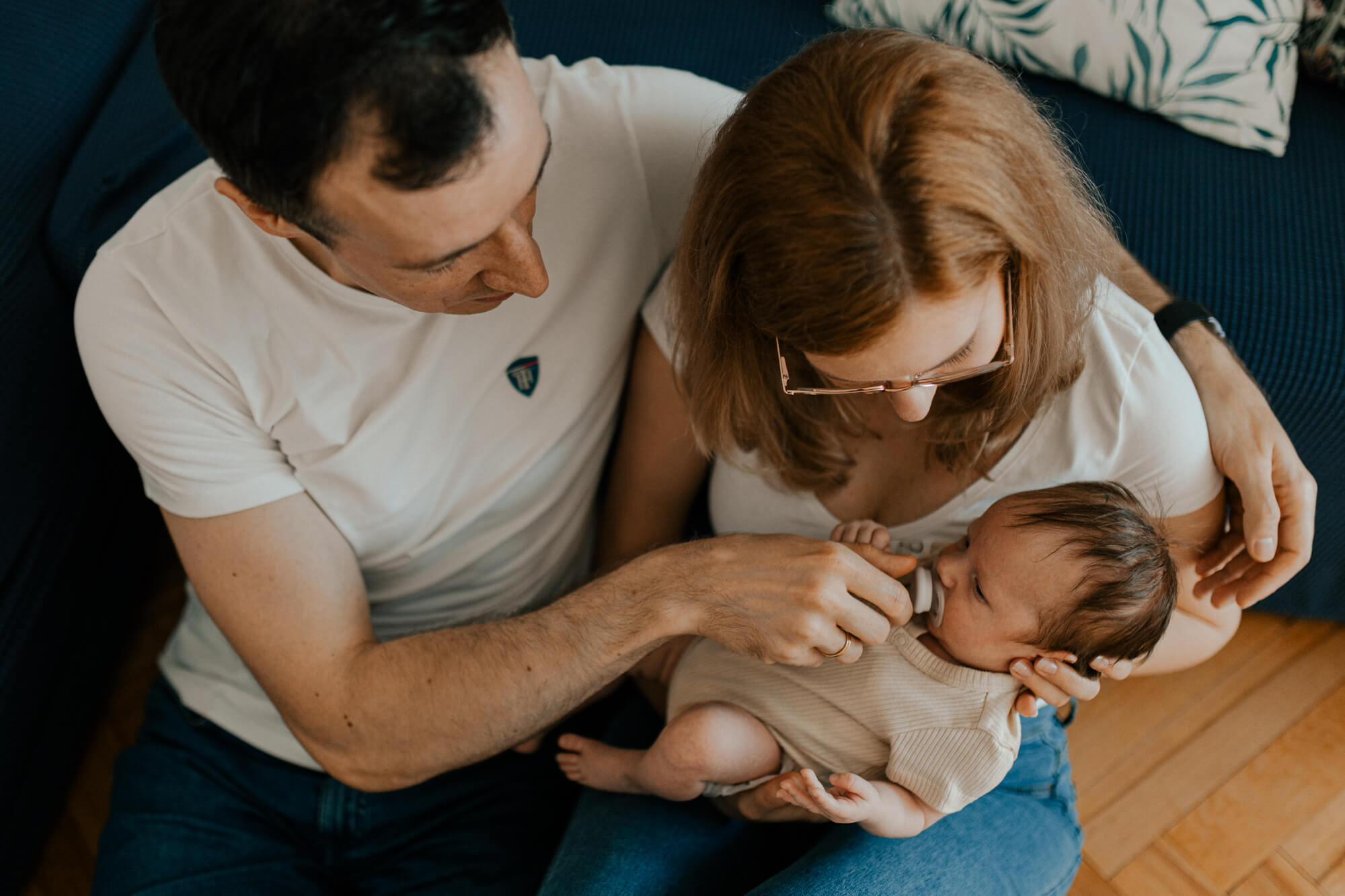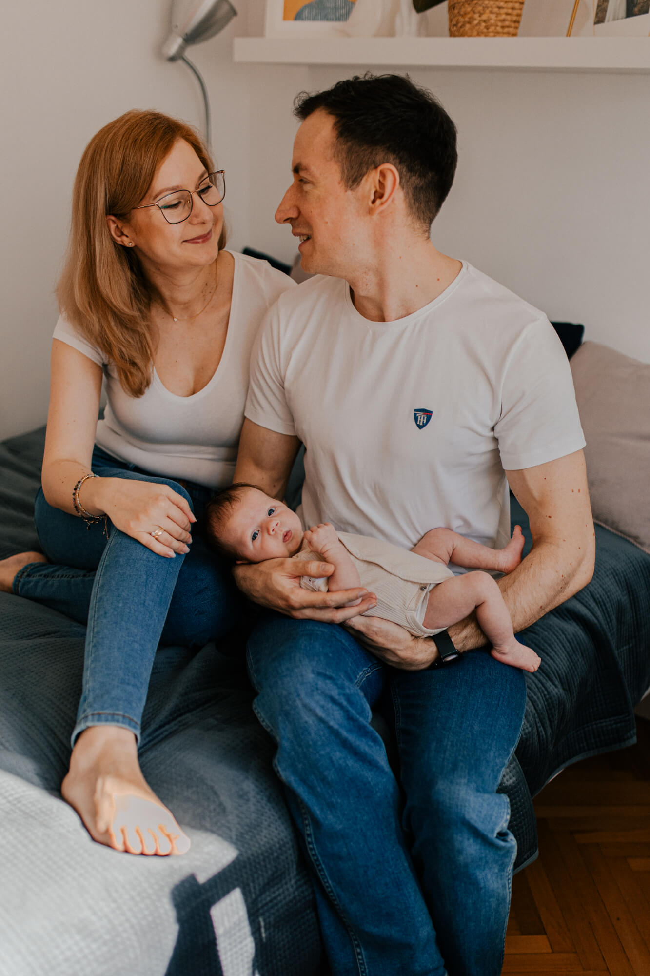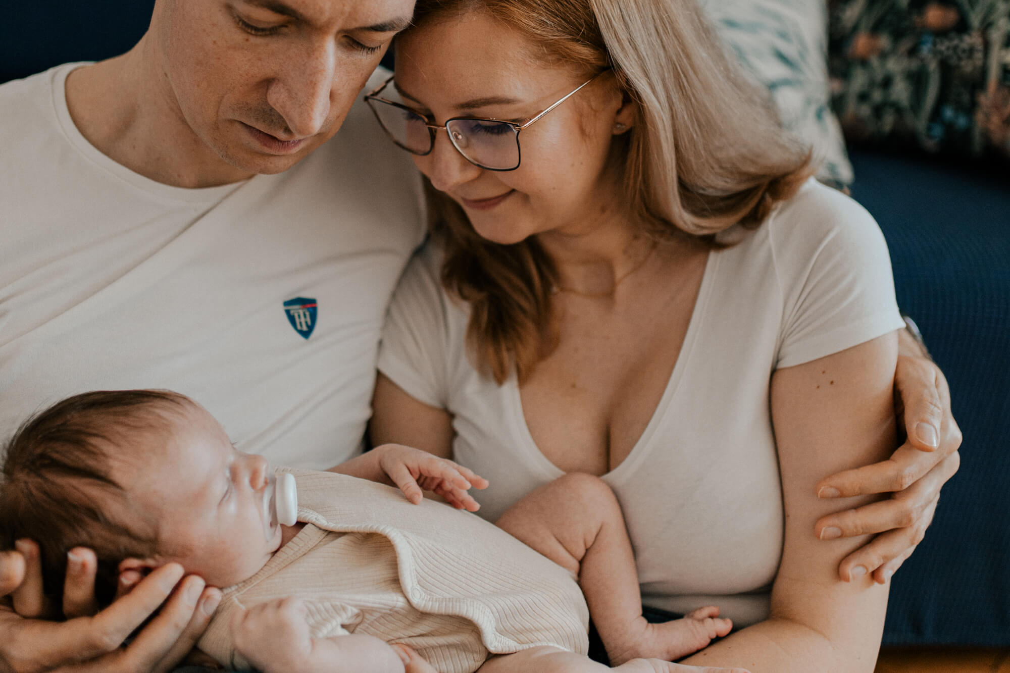 Z Kasią i Dawidem poznałam się rok wcześniej i miałam ogromną przyjemność fotografować ich wesele. Nawet nie wiecie jak było mi miło, gdy odezwali się do mnie ponownie: z wiadomością, że są już teraz rodziną i chcieliby, abym uwieczniła dla nich kolejny ważnych ich moment ich życia. I spotkaliśmy się! Eliza na tych zdjęciach ma raptem 3 tygodnie.